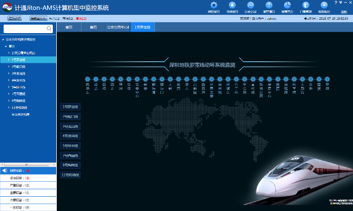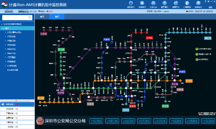 監(jiān)控范圍:1-5號線地鐵站122個(gè)站點(diǎn)及13個(gè)公交派出所,總計(jì)139個(gè)警用通信機(jī)房;7,9,11號線,總計(jì)66個(gè)警用通訊設(shè)備室;三期6號線28個(gè)站點(diǎn)機(jī)房;3號南延線及10號線前端站點(diǎn)機(jī)房(共計(jì)26個(gè)前端站點(diǎn)機(jī)房)。