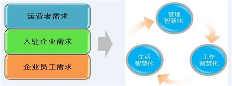 在智慧園區(qū)建設的過程中,要滿足不同人群的需求。從運營者的角度出發(fā),需要高效智能的管理、綠色節(jié)能的設施;從企業(yè)的角度看,其長遠發(fā)展更是需要各類企業(yè)服務資源,如工商注冊、財務稅收、融資擔保等;從員工的角度出發(fā),良好的辦公環(huán)境,以及完善的生活服務是首要需求。圍繞企業(yè)的發(fā)展要求和人才的精神需要,建設智慧型園區(qū),必須協調政府、企業(yè)等各方資源,實現管理、工作、生活智慧化,三位一體打造智慧園區(qū)。