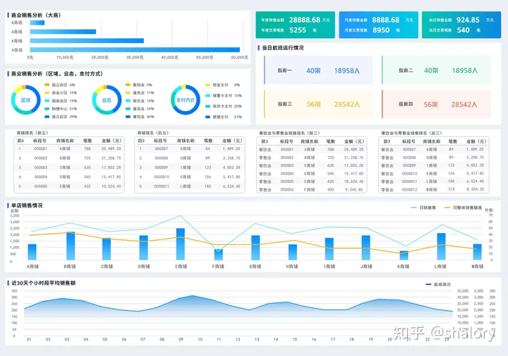 通過對不同店鋪的交易人數(shù)、交易單數(shù)、交易額、利潤額等指標多維度的分析,使機場運行管理者可以直觀的掌握機場商鋪的營收情況、不同區(qū)域的旅客流量情況和不同品類店鋪的消費情況,并且根據(jù)數(shù)據(jù)分析的結(jié)果,對機場內(nèi)的商鋪價格和航班離港機位的調(diào)整,促進旅客的消費和店鋪的營收,提高機場整體的盈利水平。