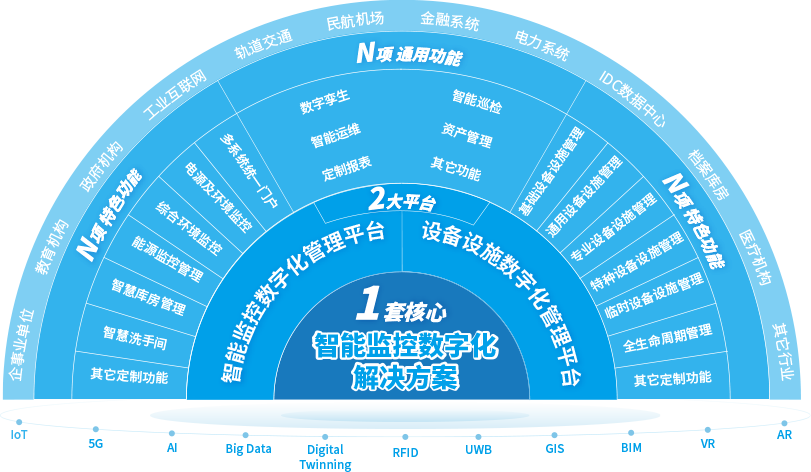 公司充分融合物聯(lián)網(wǎng)、大數(shù)據(jù)、云計(jì)算、人工智能、數(shù)字孿生等新技術(shù),打造出一系列具有行業(yè)特色的智能監(jiān)控?cái)?shù)字化解決方案,廣泛應(yīng)用于民航機(jī)場(chǎng)、金融系統(tǒng)、軌道交通、電力系統(tǒng)、工業(yè)互聯(lián)網(wǎng)、數(shù)據(jù)中心與其它行業(yè)。