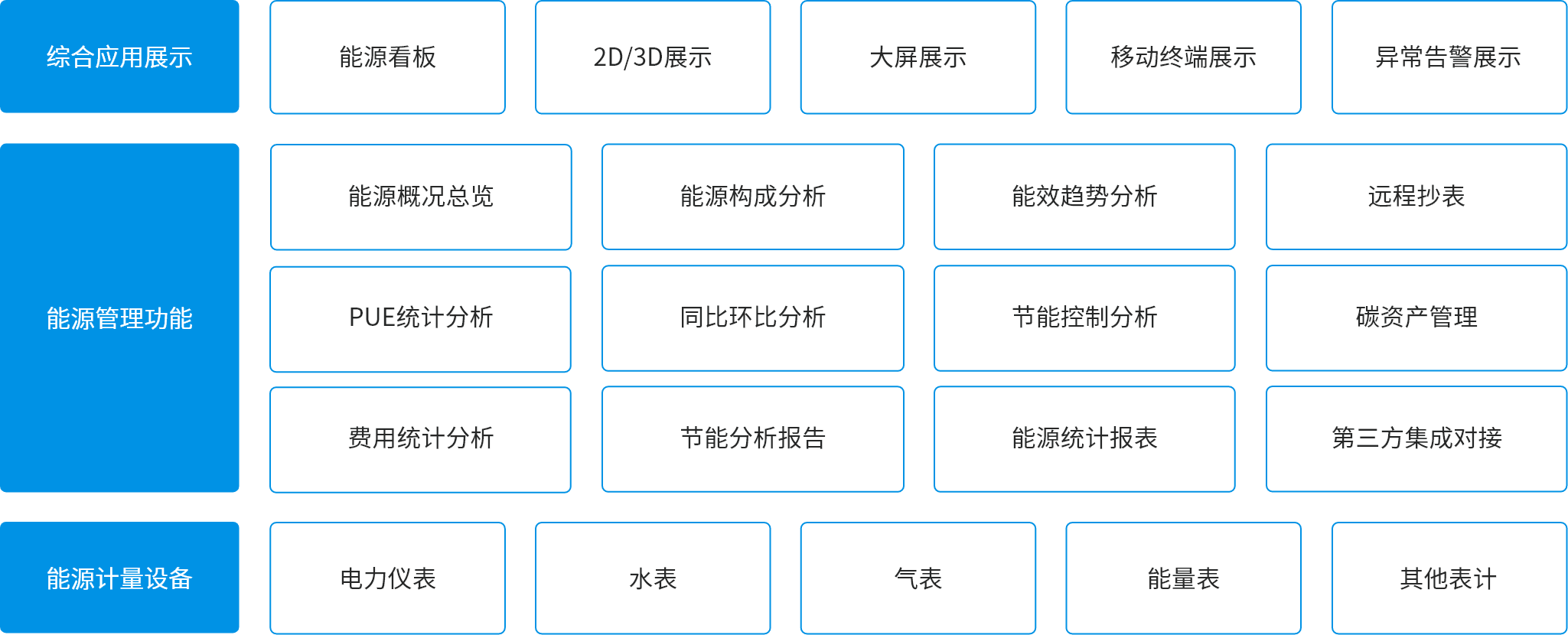 能源管理系統(tǒng)將能源(包括水、電、氣等)作為企業(yè)級的資源,采用自動化采集方式,將采集的數(shù)據(jù)進行歸納、分析和整理,結(jié)合生產(chǎn)計劃等數(shù)據(jù),集中進行調(diào)配、管理和考核,并通過對能耗系統(tǒng)和環(huán)境數(shù)據(jù)實行實時監(jiān)控、統(tǒng)計分析、預(yù)測分析等功能,最終實現(xiàn)能源系統(tǒng)一體化運作和集中管理,實現(xiàn)有效的能源監(jiān)控管理和能源平衡調(diào)度。實現(xiàn)企業(yè)能源數(shù)據(jù)的統(tǒng)一采集、統(tǒng)一管理和使用、一站式的管理和按授權(quán)的分散使用,實現(xiàn)能源的工序成本核算,建立客觀的以數(shù)據(jù)為依據(jù)的能源消耗評價體系。
