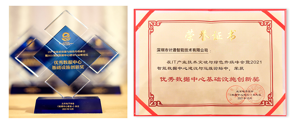 2021年10月20日以“共謀科技新發(fā)展 共創(chuàng)行業(yè)新格局”為主題的“IT產(chǎn)業(yè)技術(shù)突破與綠色升級峰會暨2021智能數(shù)據(jù)中心建設(shè)與運維論壇”在北京舉行。此次大會揭曉的獲獎優(yōu)秀企業(yè)中,深圳計通憑借持續(xù)的創(chuàng)新力與優(yōu)質(zhì)的產(chǎn)品服務(wù)能力,斬獲了“優(yōu)秀數(shù)據(jù)中心基礎(chǔ)設(shè)施創(chuàng)新獎”、“優(yōu)秀數(shù)據(jù)中心服務(wù)商獎 ”雙項大獎。深圳計通有幸與一同獲此殊榮的、施耐德、維諦、英威騰、科華恒盛等優(yōu)秀企業(yè)企業(yè)一起并肩為中國數(shù)據(jù)中心智能化建設(shè)與運維貢獻持續(xù)性創(chuàng)新動力。