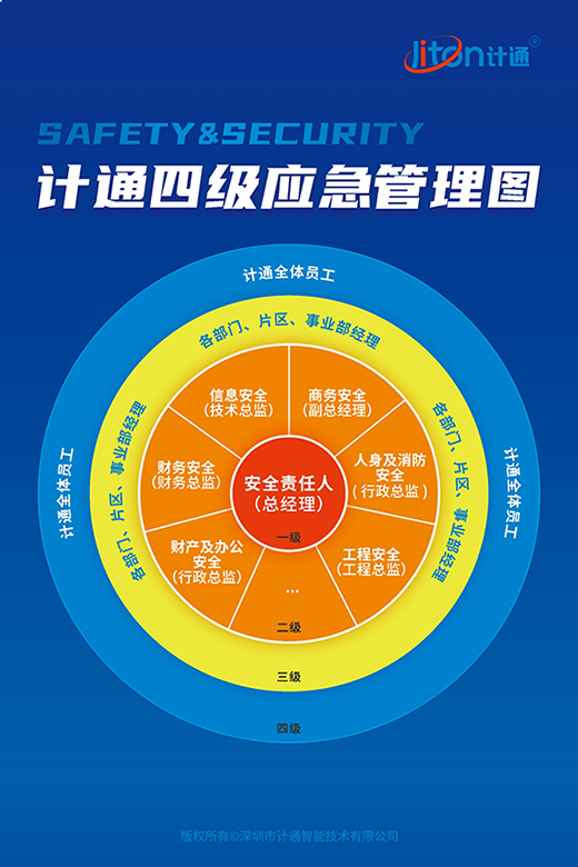深圳計(jì)通始終將安全放在第一位,通過“計(jì)通四級(jí)應(yīng)急管理”體系將安全責(zé)任貫穿與落實(shí)到整個(gè)公司企業(yè)文化中。