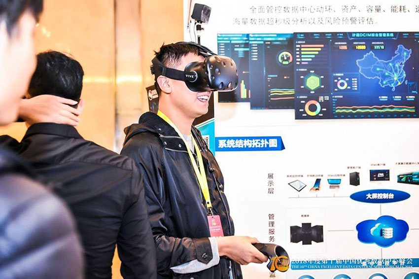 同時深圳計通在3D系統(tǒng)中成功應用VR技術(shù),通過VR實時、沉浸式的交互,完全虛擬現(xiàn)實的體驗,使用戶如在身臨其境的環(huán)境中完成對現(xiàn)場設(shè)備的監(jiān)控和管理,全面提升監(jiān)控系統(tǒng)形象,為客戶締造一種全新的可視化交互管理模式,提高監(jiān)控運維的參與感和企業(yè)管理水平。其系統(tǒng)友好的界面及系統(tǒng)的智能性等,現(xiàn)場吸引了不少用戶前來操作體驗。